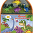 El entretenido estuche de mini divertilibros contiene un libro con esplendidas ilustraciones, cuatro dinosaurios y un escenario de juegos.